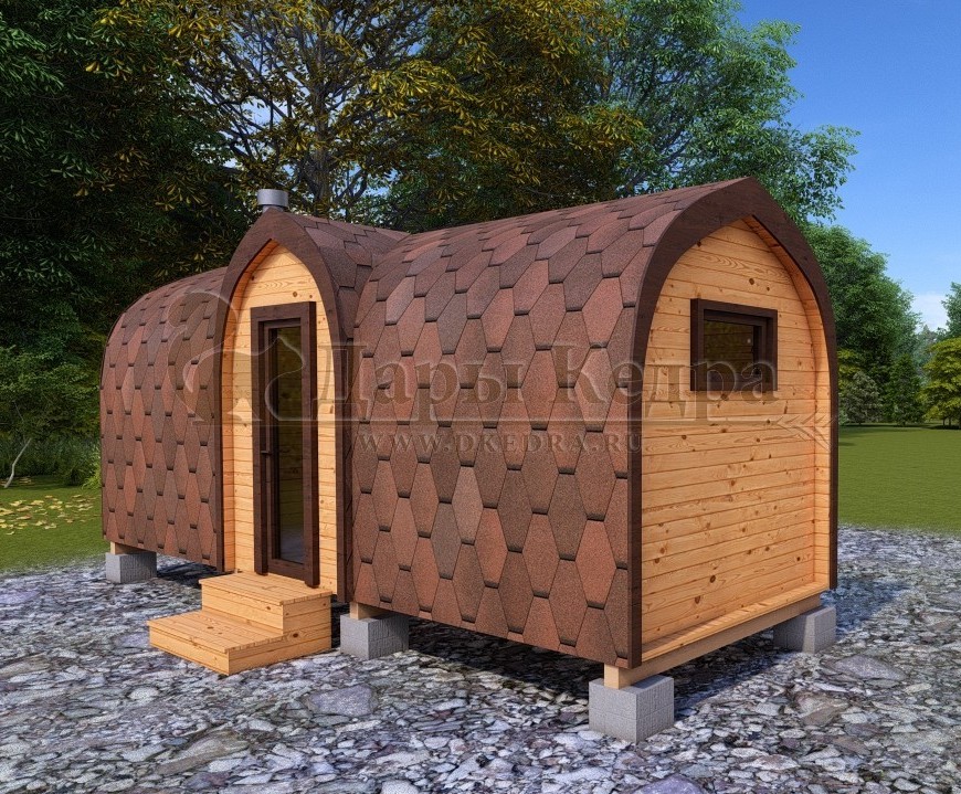 Бани бочки различных форм и размеров, как правило длиной от 2 до 6 метров. Это компактное и стильное решение для дачи или загородного дома.