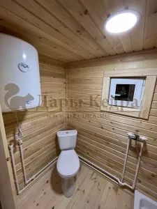 Это домик прямоугольной формы с панорамным окном и двумя помещениями: комнатой отдыха и санузлом с душевой зоной. Может быть изготовлен по готовым стандартам или вашим индивидуальным размерам. Современные материалы, используемые при проектировании, отличаются экологичностью и прочностью.